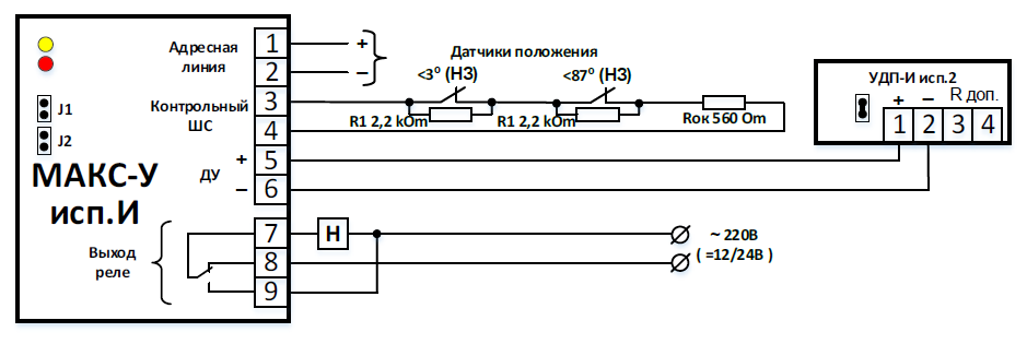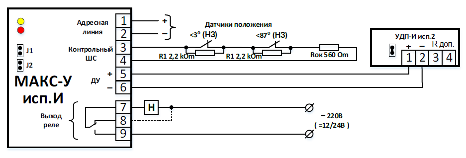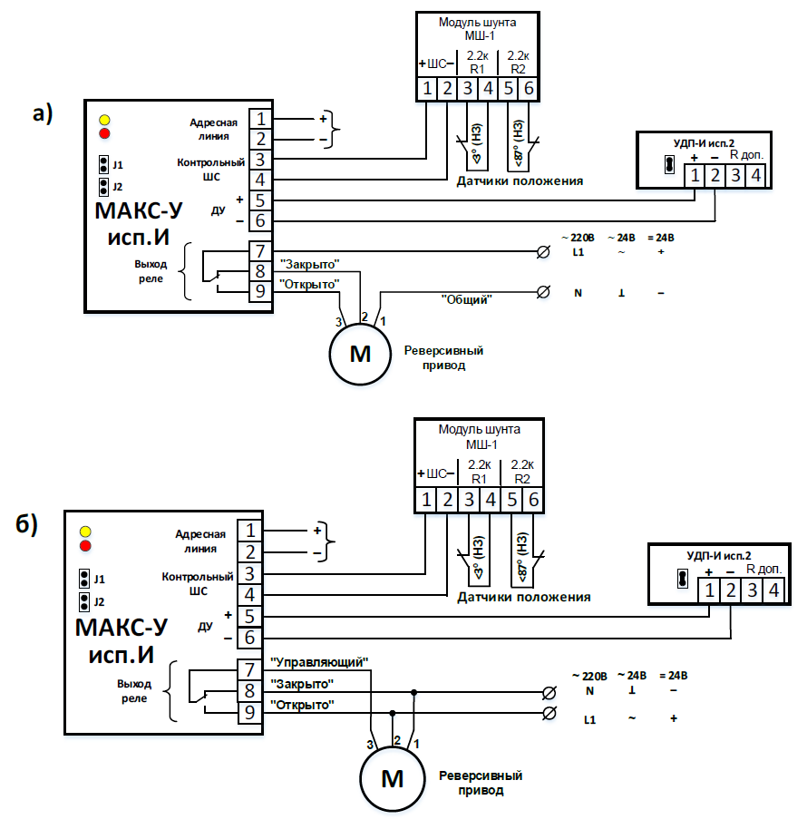 Для подключения датчиков положения привода, рекомендуется использовать модуль шунта МШ-1.