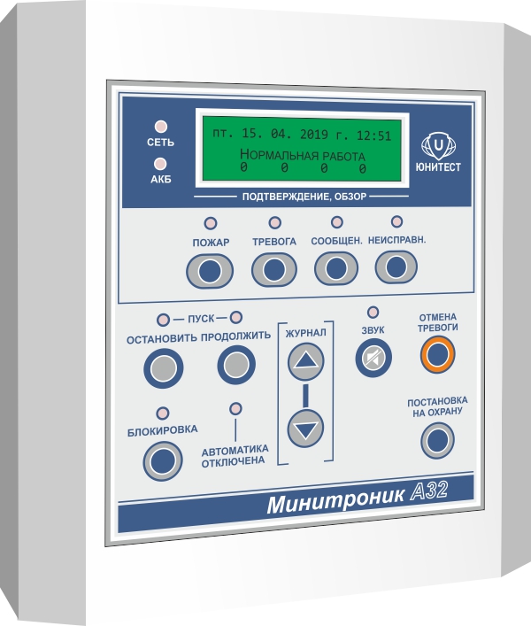 - Практичное хранилище данных. «Минитроник А32» требует обязательного подтверждения происходящих событий и поступающих команд. По подробному отчету можно проконтролировать работу дежурного.