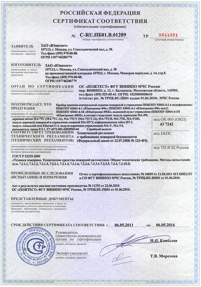 Юнитроник 496 В составе с: Юнитроник 496П, МА-РК, МА-7ТС, МА-7ТСУ, МА-7ТСН, МА-7ТК, МА-УОП, МА-ПУЭ, ИТ-1, Ethernet U-1, МА-У, МА-У4, РЛ-1 Срок действия до: 06.05.2016 г. |
