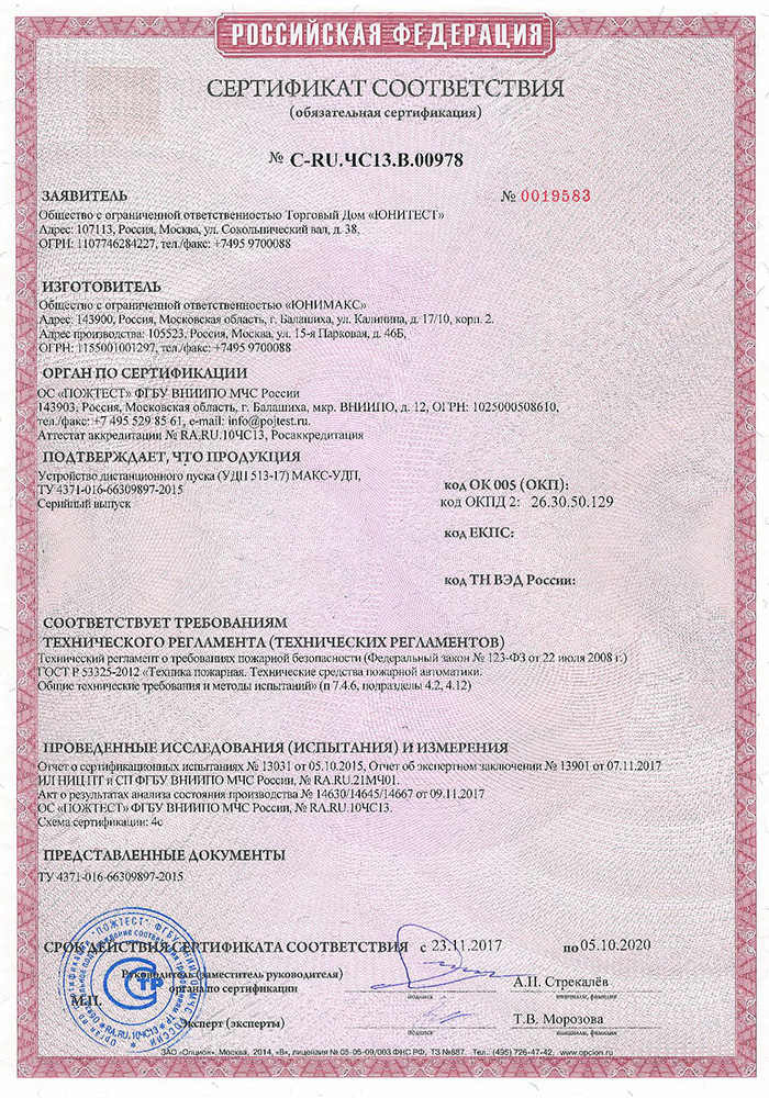 Устройство дистанционного пуска МАКС-УДП Срок действия до: 05.10.2020 г. |