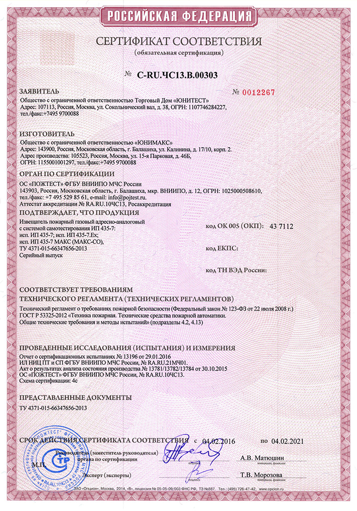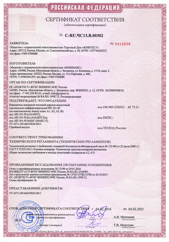 Извещатели А16-ИПТ, МАКС-ИПТ, А16-ИПТ.Ех Срок действия до: 04.02.2021 г. |