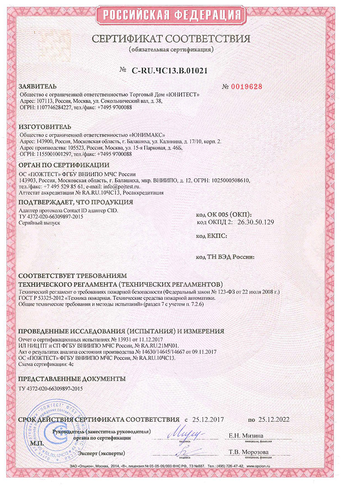 Адаптер Contact ID (CID) Срок действия до: 25.12.2022 г. |