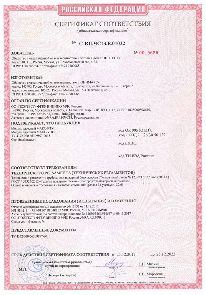 Модуль адресный МАКС-КТМ и МАКС-УОП-ЧС Срок действия до: 25.12.2022 г. |