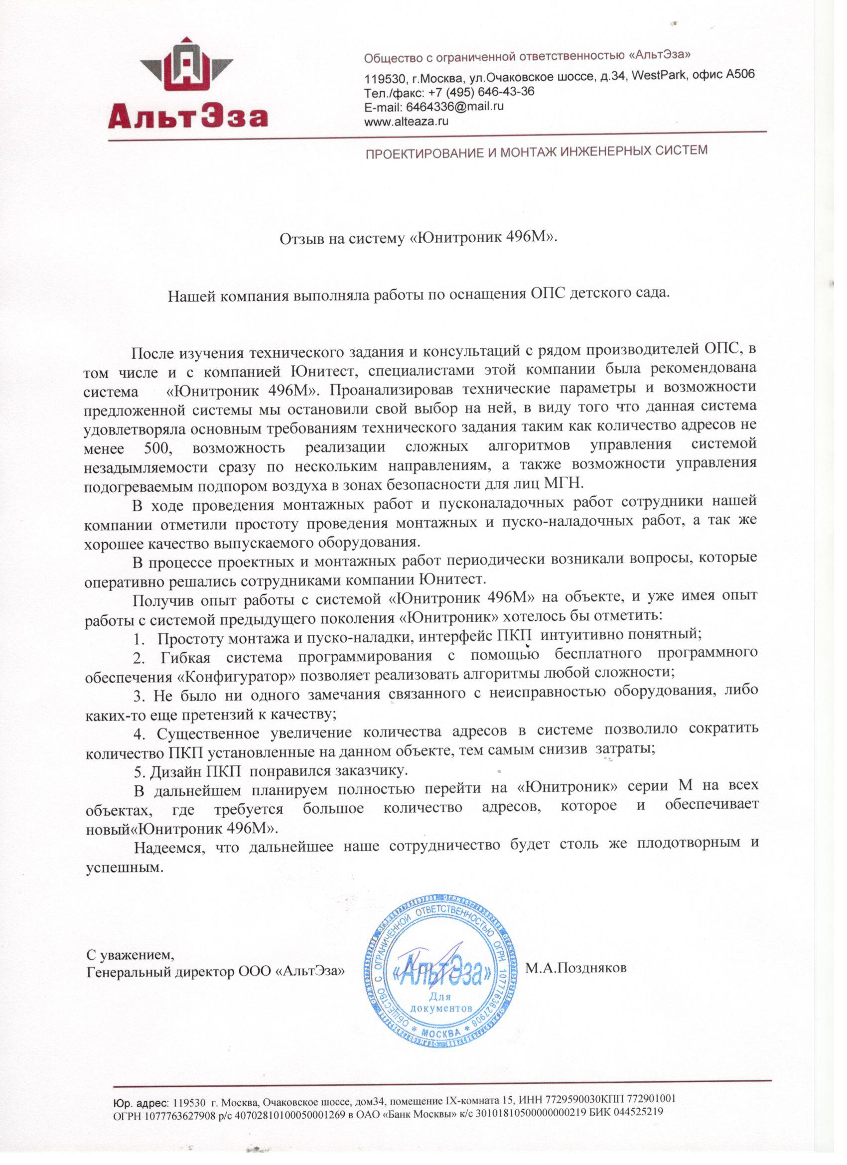 - 2 года на адресно-аналоговую систему «Юнитроник» − «Минитроник А32»;